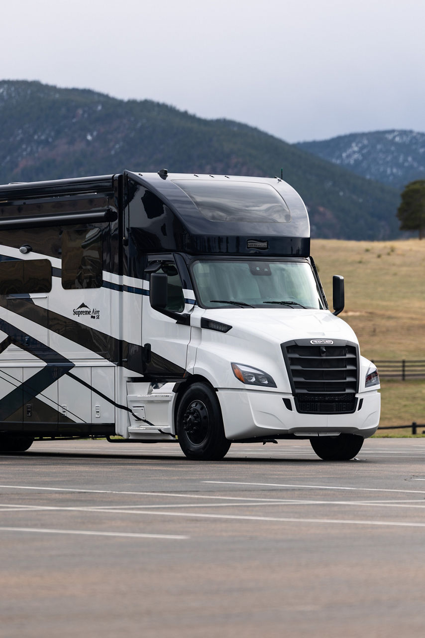 Supreme Aire is a Super C motorhome built on a Freightliner® Cascadia chassis, offering towing capacity up to 30,000 pounds, superior stability, and luxury features that redefine the Super C category.